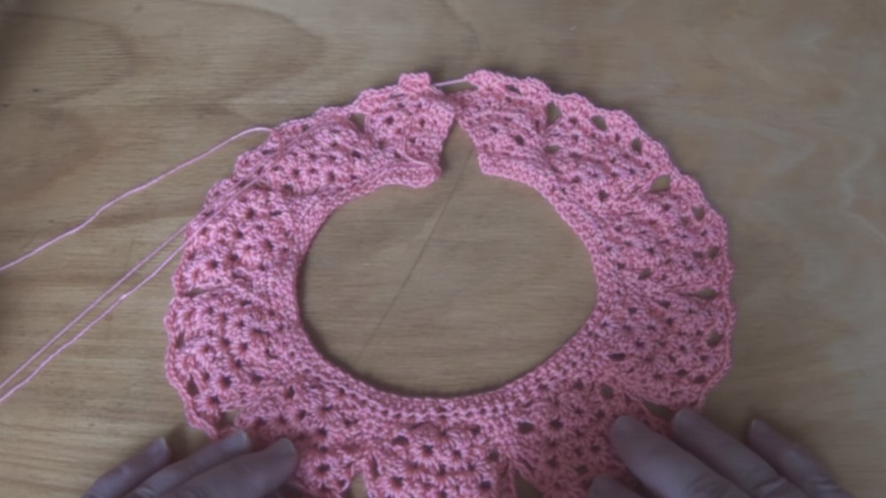 Adjust for Gauge/Size: When choosing your starting chain length, remember that the pattern repeat is 8 stitches (not strictly followed in the example, so check your own gauge). If you need a larger neckline, add chains in multiples of 8, or add 4 chains if working flat to ensure symmetry.