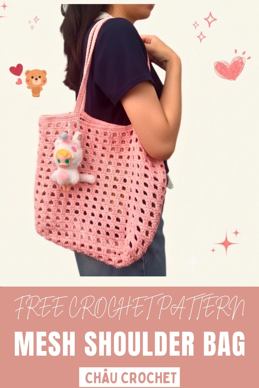 Stylish yet functional, a mesh shoulder bag offers a breezy and modern charm, perfect for casual outings or errands. Its lightweight structure and airy design make it ideal for carrying essentials while showcasing effortless elegance. The pattern combines sophistication with simplicity, making it suitable for various skill levels in crochet.