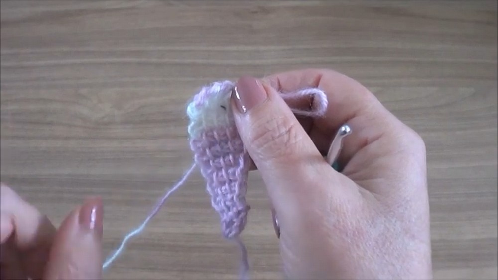 For the spaces, the stitches are divided into groups, worked row by row before connecting them seamlessly with slip stitches.