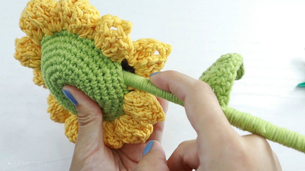 Achieve a flawless finish by tucking your yarn tails into the center before you finish the stuffing. Before you seal the final petal, use your hook or a tapestry needle to pull all loose ends from the base discs into the stuffed cavity, this eliminates the need for weaving and ensures your sunflower looks clean and professional from every angle!