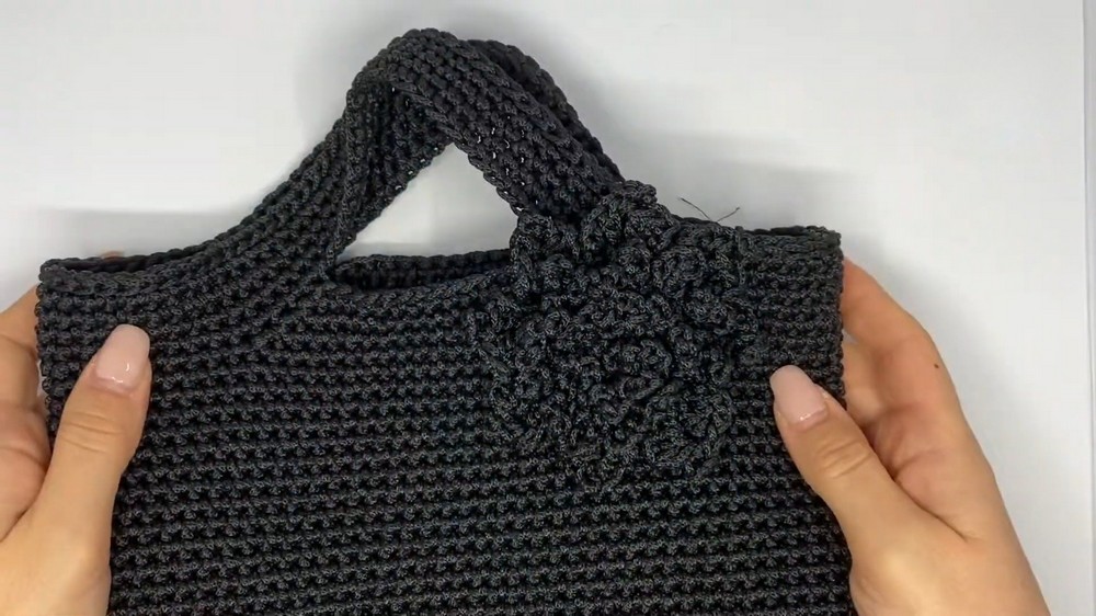 The lightweight yarn and flexible stitches allow the bag to maintain shape while remaining easy to carry.