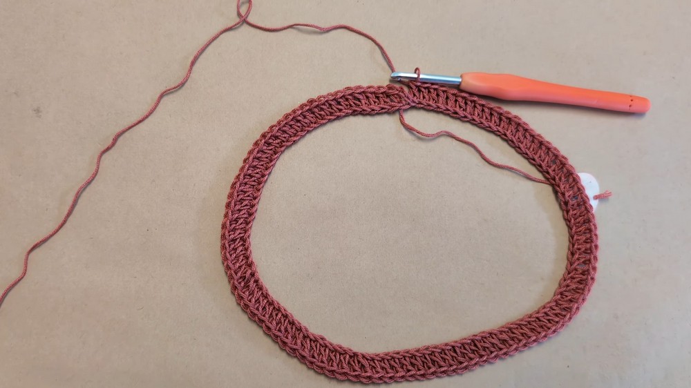 • Chain 2 and work double crochets into the back loops of the foundation chain. Continue until the round is complete.
