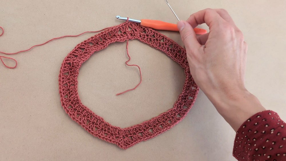 • At each increase point, create three double crochets, chain 2, and then create another set of three double crochets in the same space.