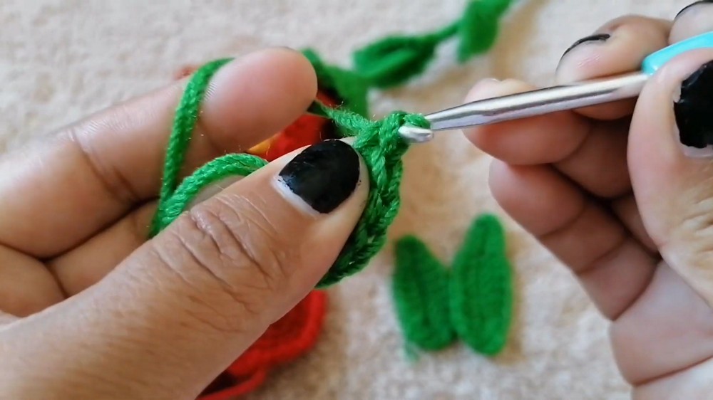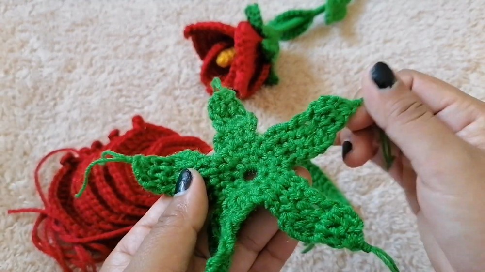 Double Yarn: If using thin yarn for the green parts, use two strands (double hebra) to match the thickness of the petals.