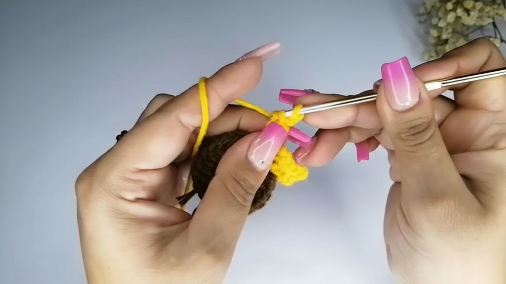- Sixth chain: Half double crochet.