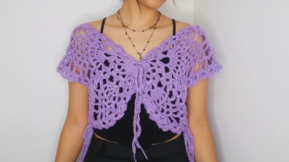 This mesh sweater is a rewarding project that balances simplicity with sophisticated details. By mastering the alternating decrease technique and the seamless join, you create a garment that is both functional and fashion-forward. The wide sleeves and delicate front tie add a feminine touch to the structured mesh.