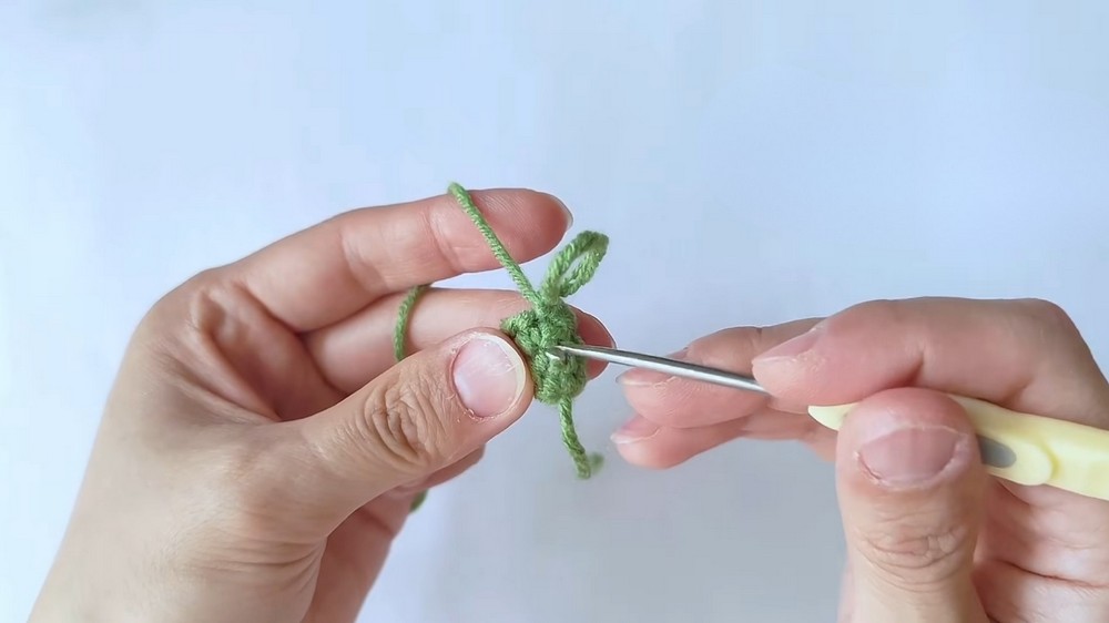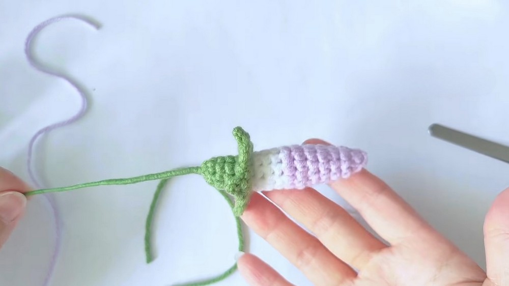 Essentials: Fiberfill stuffing for the bud, a yarn needle, and scissors.