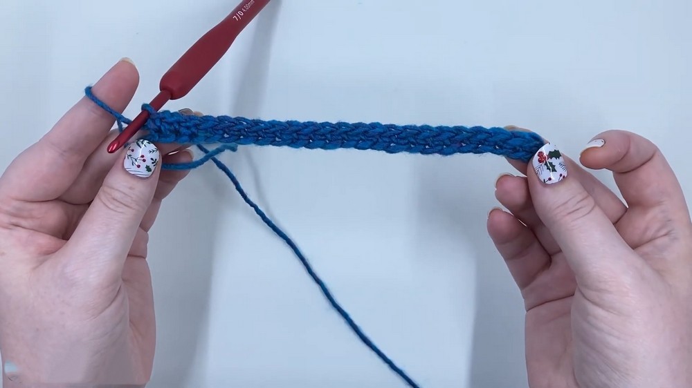 This pattern starts with a foundation chain of 24, which can be adjusted to your desired width, followed by rows of single crochet stitches.