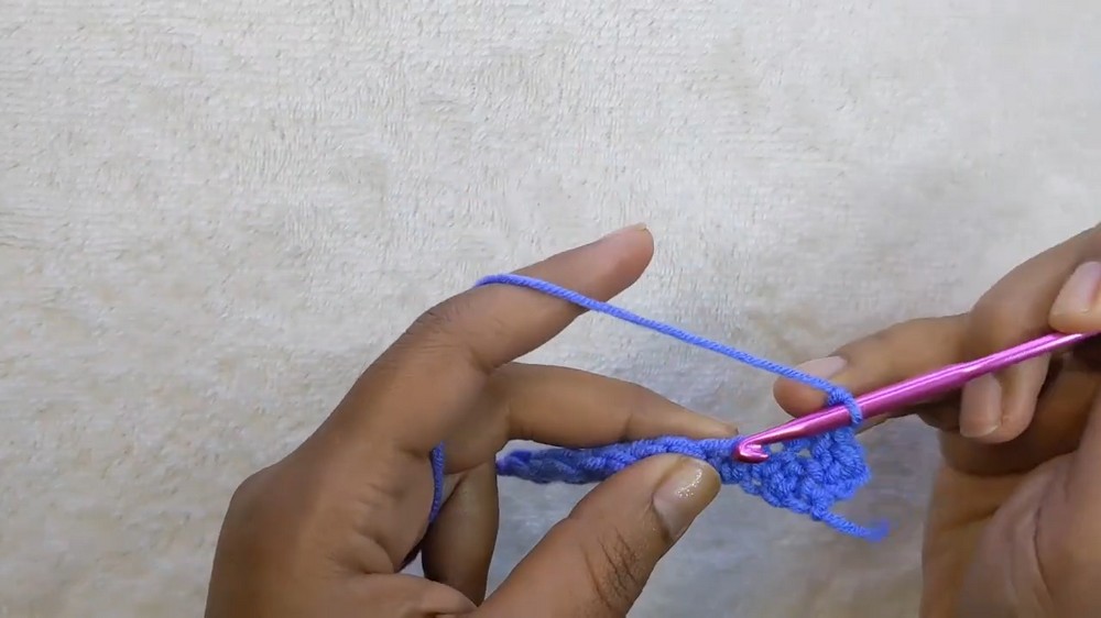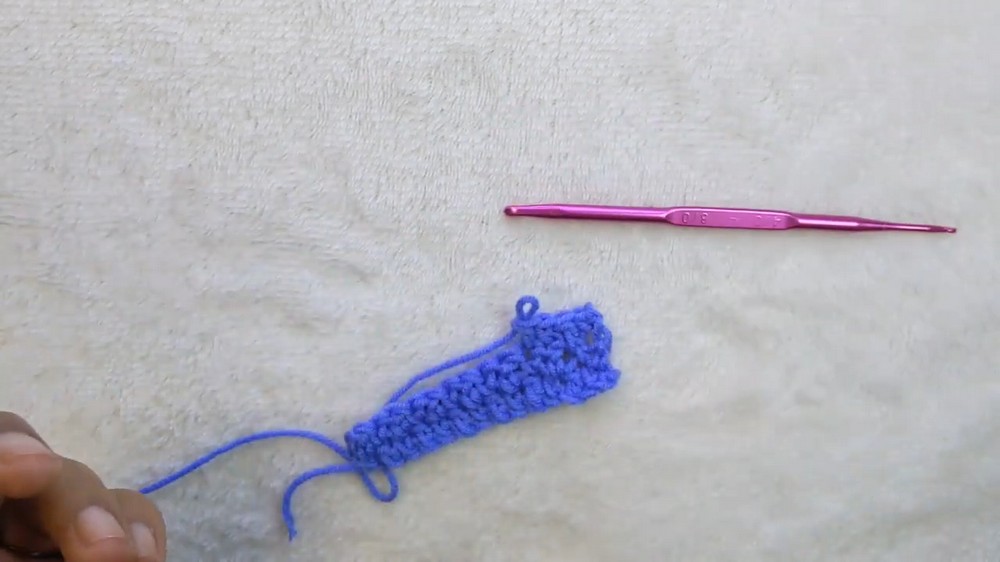 - Start with a chain of 15 stitches. The width can be adjusted by increasing or decreasing the number of chains.