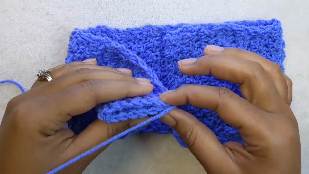 - Repeat the pattern until the piece reaches the desired length. The length should wrap comfortably around your head, meeting snugly without being tight.