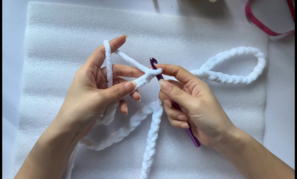 - Make a chain according to your desired length (e.g., 65-75 inches). Yan made 130 chains for her scarf.