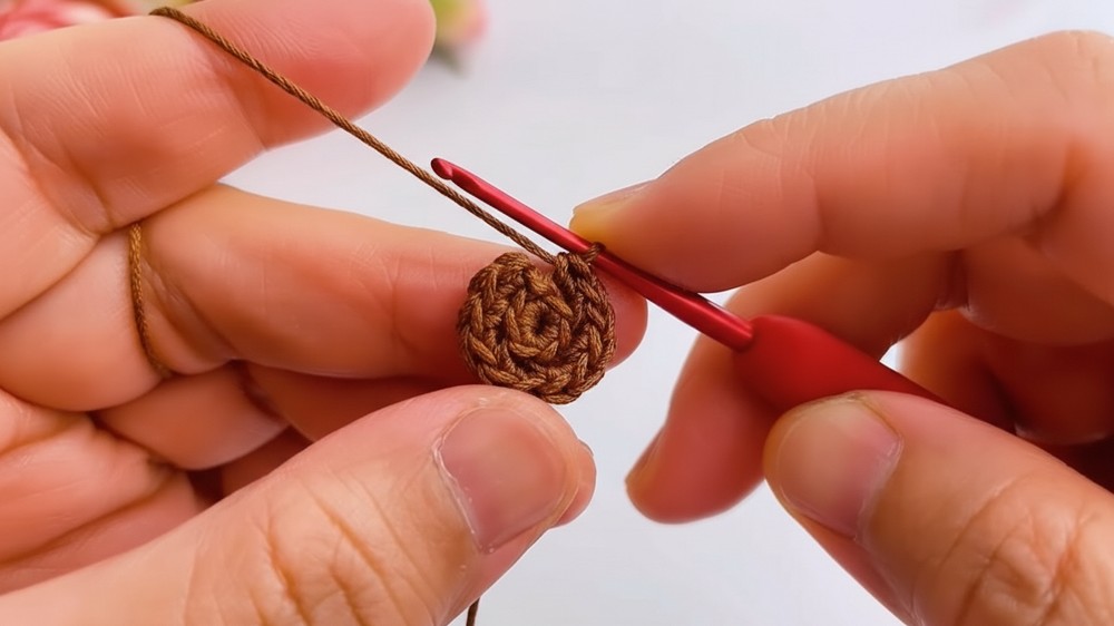 - Crochet 6 single crochets (SC) into the ring.