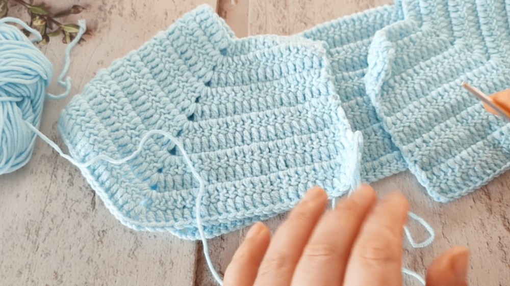 - After finishing the yoke, you join the sleeve sections with additional chains to create armholes and continue crocheting the body downward.