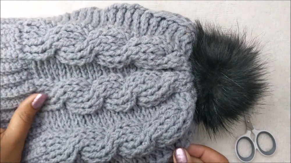 For finishing touches, the top is woven closed, and an optional button-attached faux fur pom-pom adds a modern flair. Use stitch markers to keep track of increases and decreases, ensuring a smooth fit and impeccable design while working through complex rows.