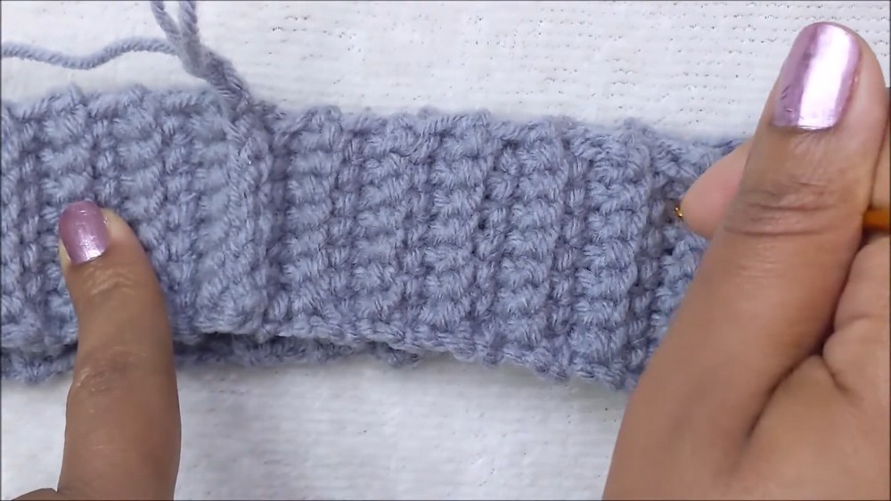 To begin, the band is worked using single crochets exclusively in the back loops, creating a subtle ribbed effect that offers flexibility and stretch.