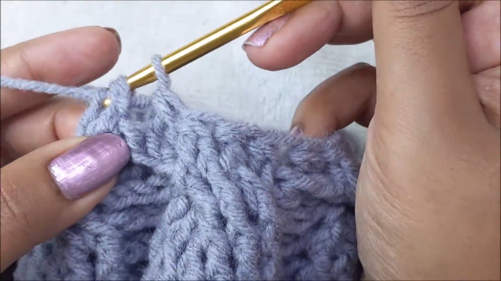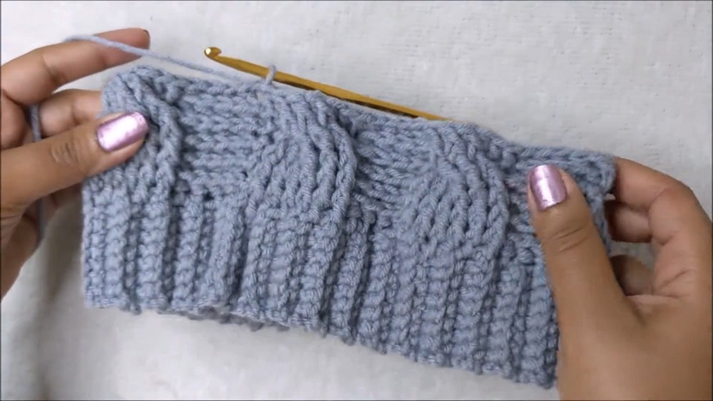 - Textured cable design created using front post and back post double crochets