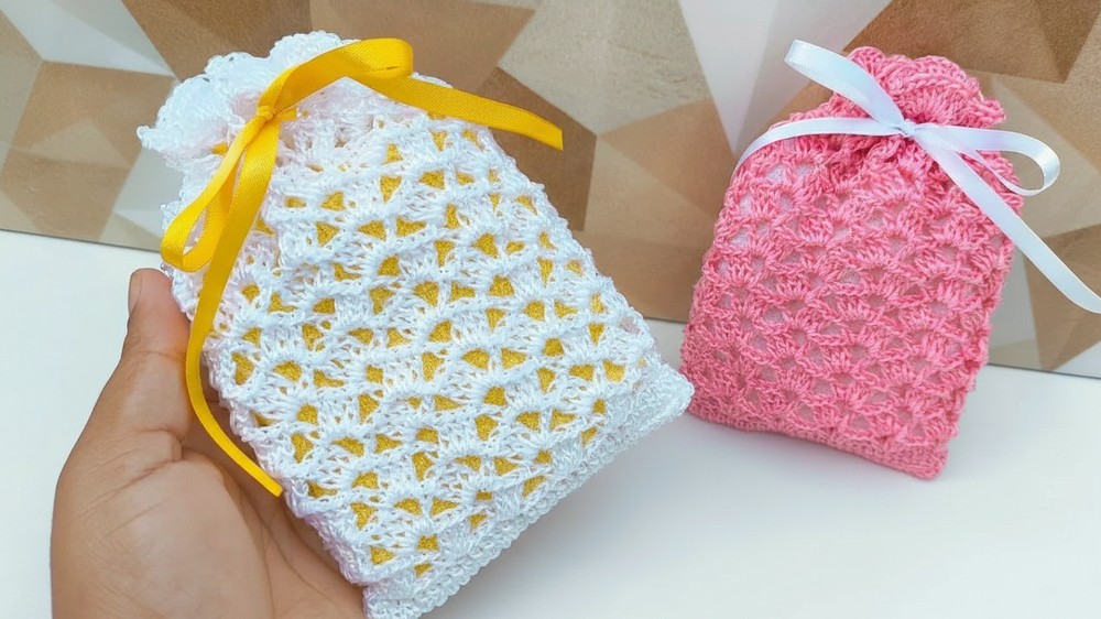 1. Elegant Design: The crochet favor bag features a zigzag stitch pattern that emphasizes its beauty and sophistication.