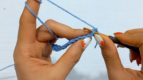- Single crochet under both loops of the first stitch.