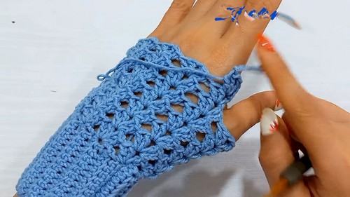 - Join the round as previously done and repeat this step for several more rounds, or until the fingerless glove reaches the desired height before the thumb area.