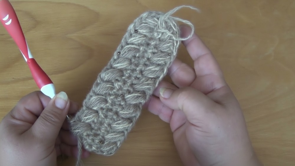 When working the Puff Stitch pattern (Row 2 and beyond), always make sure you pull the loops for the puff column to the same height as the DC stitch in the group. If the puff is too short, the resulting braid texture will be uneven and pull the fabric inward. Maintaining an even height ensures the texture is uniform and gives the piece its necessary volume.