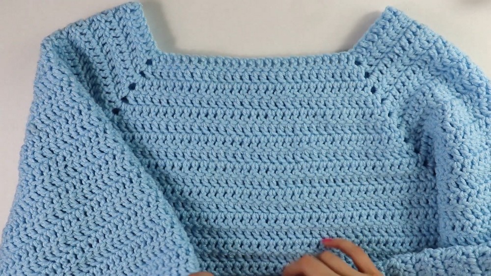 To ensure a perfect fit, try the sweater on periodically while working on the body and sleeves. This will help you make any necessary adjustments to the length or width in real-time.