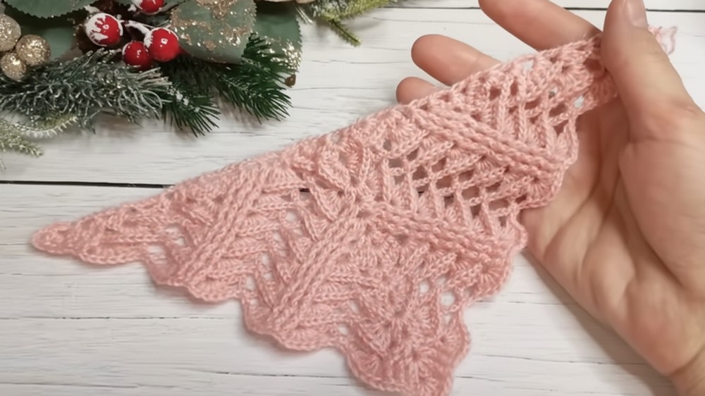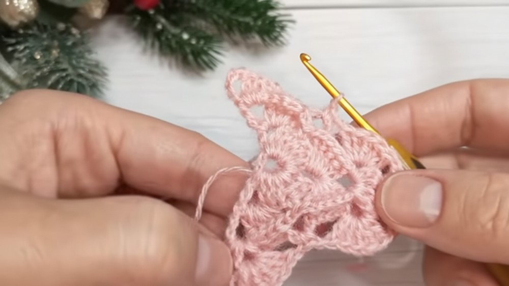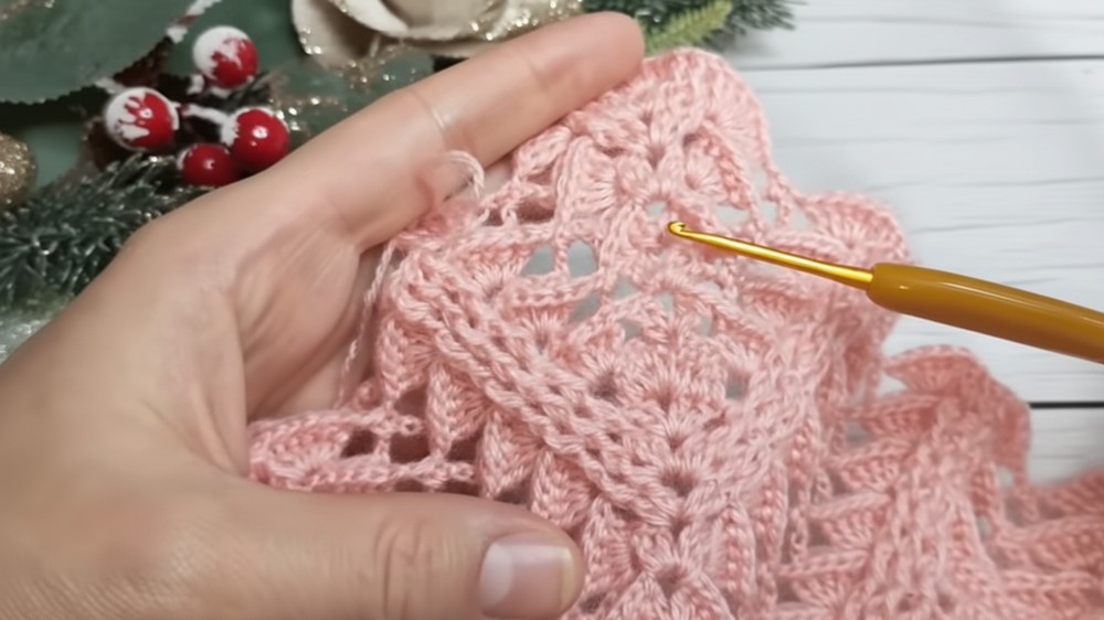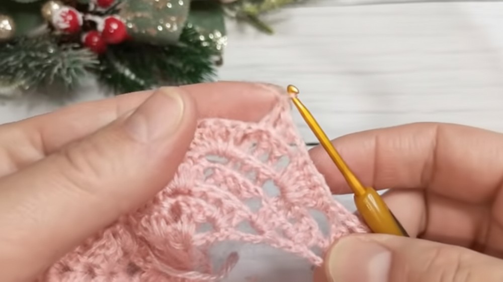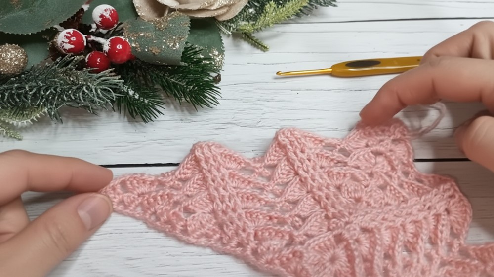 Continuous Expansion: You maintain the triangular shape by consistently working the central increase (a V-stitch shell) and the side increases at the beginning and end of each row.