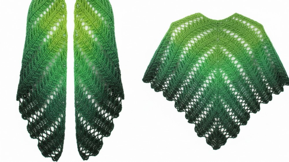 "Wave" Effect: The pattern strategically alternates between bands of smooth fabric and bands of highly textured relief columns, giving the finished shawl a beautiful, flowing, wave-like appearance.