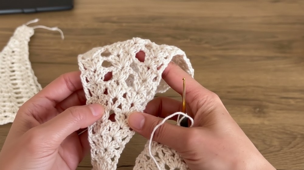 When working on symmetrical patterns like chest cups, always double-check alignment during assembly. Mark key points with stitch markers to ensure all parts join evenly, reducing the risk of crooked or uneven edges.