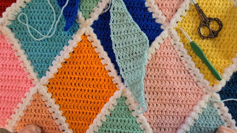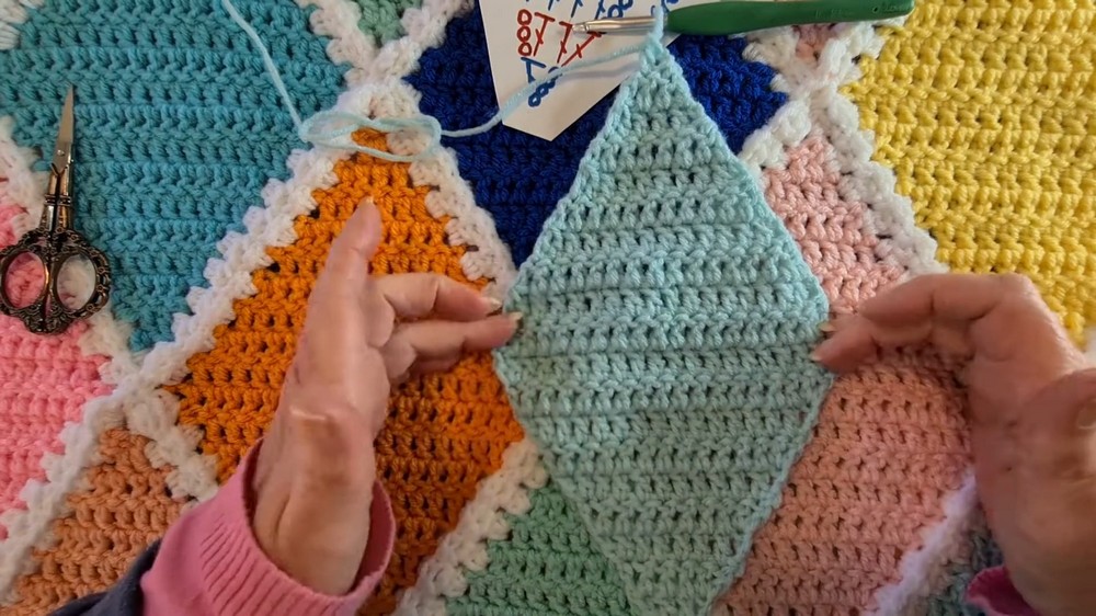 To ensure neat joins between blocks, consider wet-blocking or gently steaming your diamonds and triangles before assembly. This step helps create even edges for seamless joining.