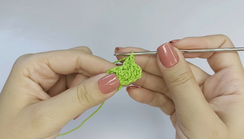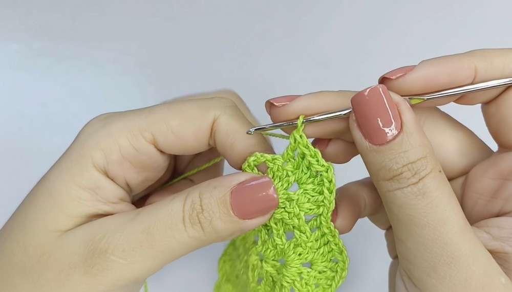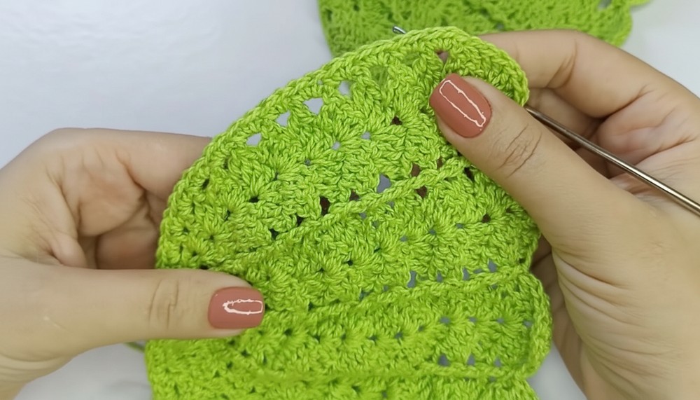 Raised double crochet stitches intricately form the sculpted details, making the pattern visually appealing.