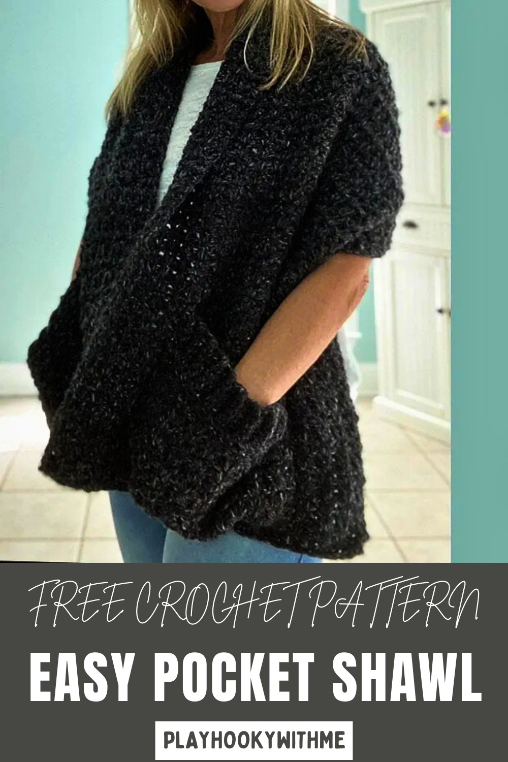 A cozy and stylish accessory, this pocket shawl stands out with its elegant V-stitch pattern and ribbed detailing on the pockets. Perfect for keeping warm and adding a charming touch to your outfit, it’s also practical with pockets for small essentials. Its timeless appeal and ease of customization make it ideal for crocheters of all levels, resulting in a versatile piece for any wardrobe.