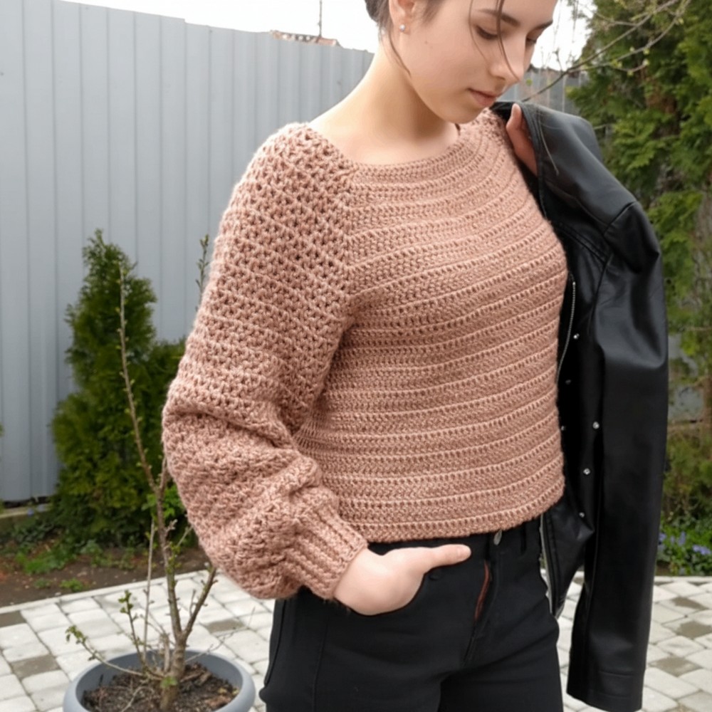 Feminine Crochet Jumper with Lace Sleeves Pattern That Turns Heads