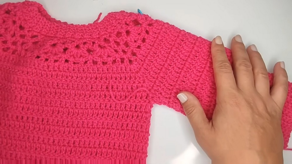 • Moving the Seam: The tutor suggests moving the starting point of the body rows to the armpit area. This ensures the "seam" (where you slip stitch to join rounds) is hidden under the arm rather than being visible on the back.