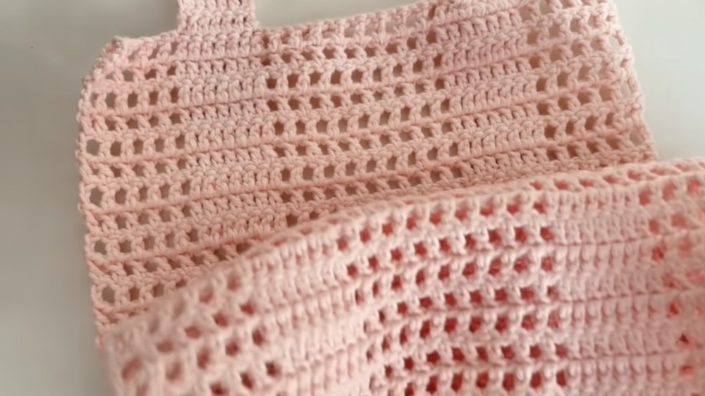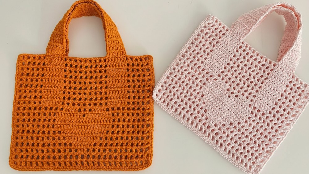 You have successfully completed your crochet tote bag! The classic filet heart motif creates a beautiful contrast against the simple mesh, resulting in a durable and stylish bag that you can proudly use or give as a thoughtful gift.