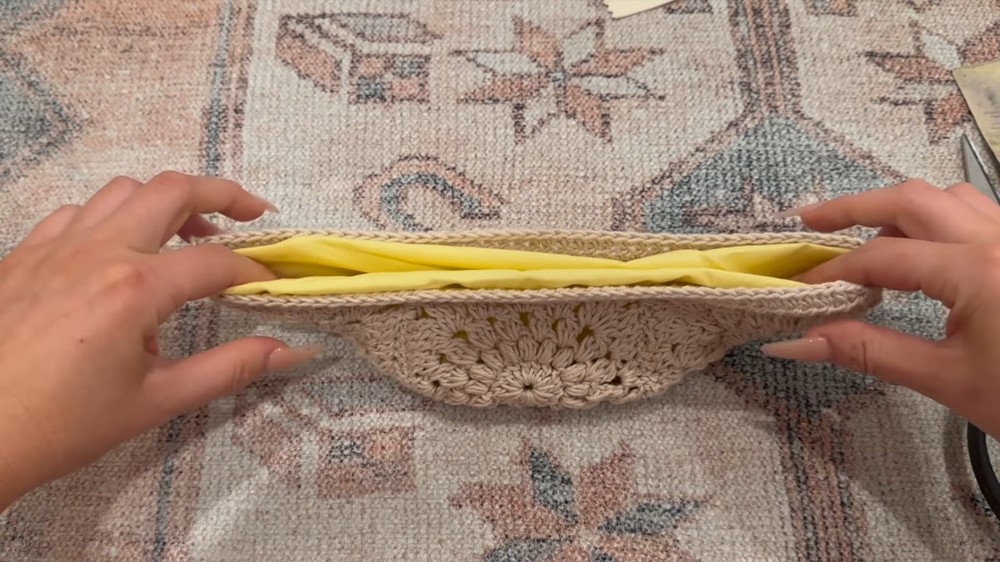 Optional: Fabric for lining (to prevent small items from falling through the crochet holes) and fabric glue. [16:46]
