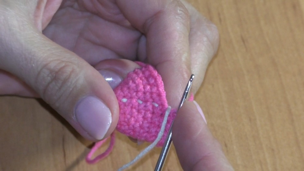 Neatly stuffing the hat and head while continuing the decrease rounds.