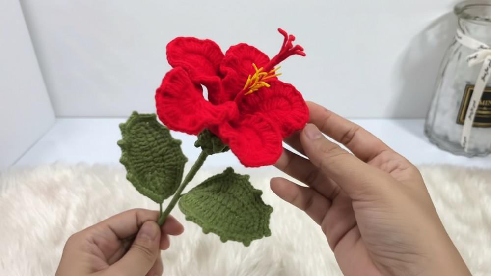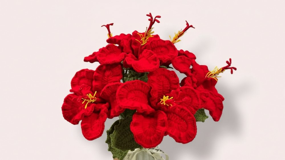 The finished crochet hibiscus is a durable and elegant piece of handmade art. By following the wired technique, you achieve a level of realism that standard crochet flowers often lack. Though it takes time to make each individual petal, the result is a striking, life-sized bloom that stays "fresh" forever.