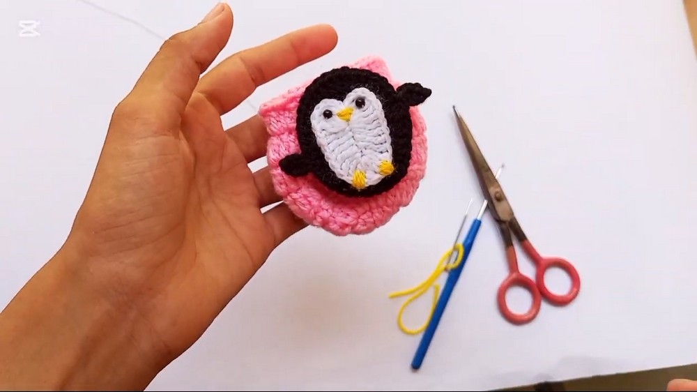 The Crochet Penguin Appliqué consists of a black outer body, a white belly and face section, and hand-sewn details like eyes, a beak, and feet. By layering these pieces, you create a 3D effect that makes the character pop. This tutorial uses simple stitches like triple crochets and double crochets to achieve a rounded, professional shape quickly.