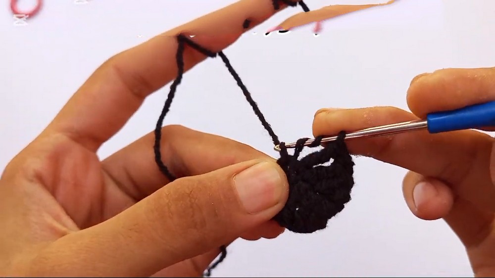 You start with a small loop and gradually increase stitches to build the width, then decrease to close the bottom.