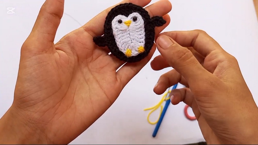 To make this penguin, the pattern usually begins with the body, which is worked in the round to create a smooth, oval shape.
