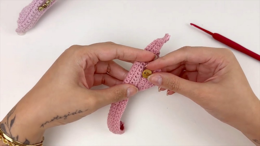 You have finished crocheting a charming and personalized bandana for your amigurumi friend! This accessory fits snugly and adds a unique, handcrafted element to your pet collection. Enjoy creating variations using different colors, details, and sizes to complete all your amigurumi projects.