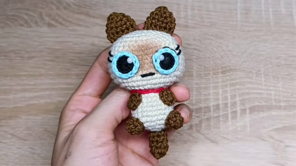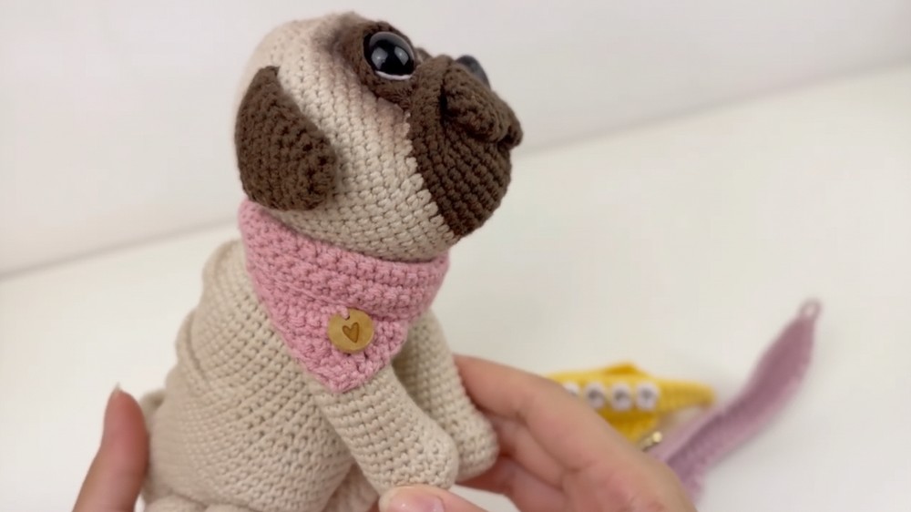 You have finished crocheting a charming and personalized bandana for your amigurumi friend! This accessory fits snugly and adds a unique, handcrafted element to your pet collection. Enjoy creating variations using different colors, details, and sizes to complete all your amigurumi projects.