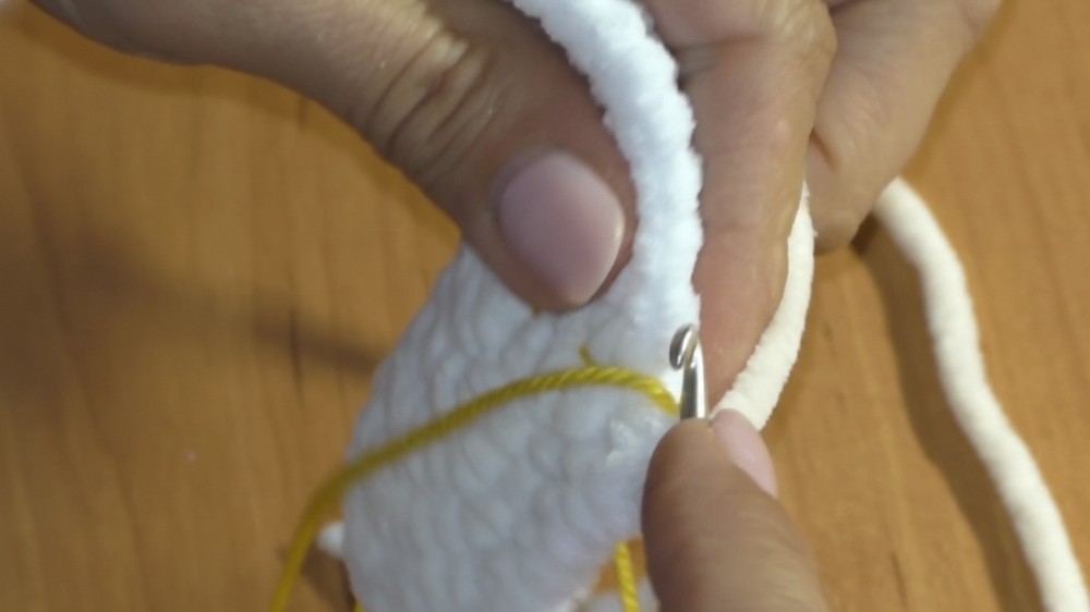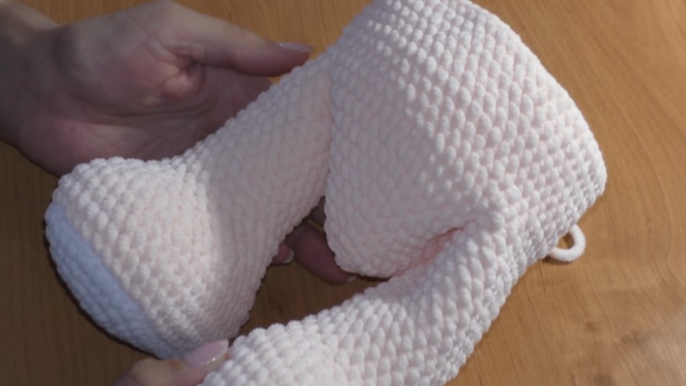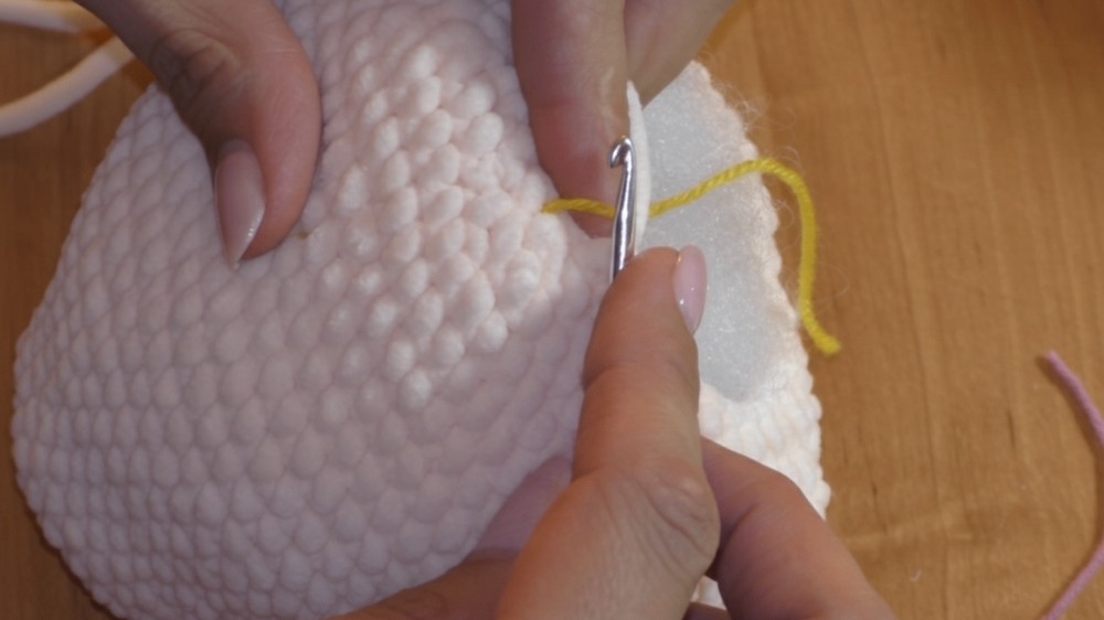 Integrated Legs and Arms: You join the legs directly to the body during the crocheting process, ensuring a secure and sturdy foundation. You also join the arms to the body in a similar manner.