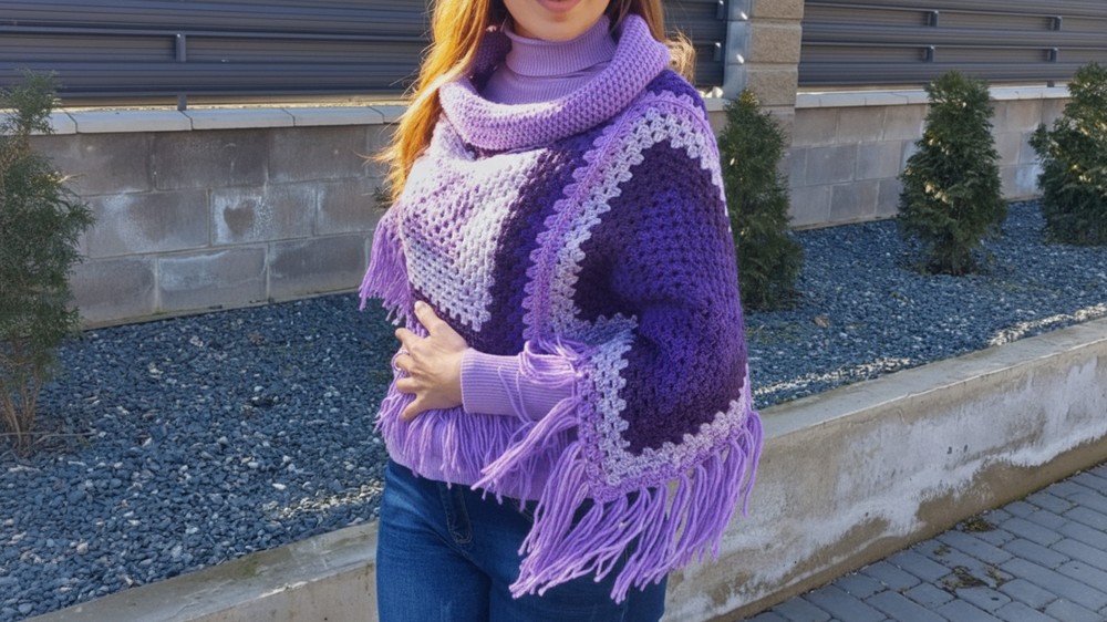 Four-Square Construction: Build the poncho using four separate Granny Squares joined together, simplifying the overall shaping.