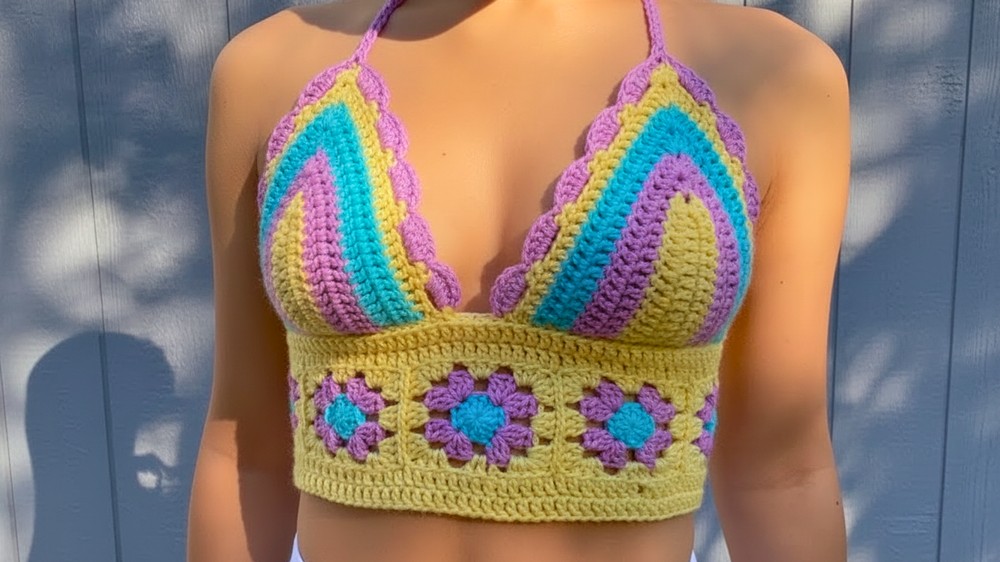 • Special Features: The Grit Stitch (alternating dc and sc) creates a dense, opaque fabric that provides good coverage without needing a lining. The diagonal orientation (turning the square into a diamond) creates the classic bandana-top silhouette.