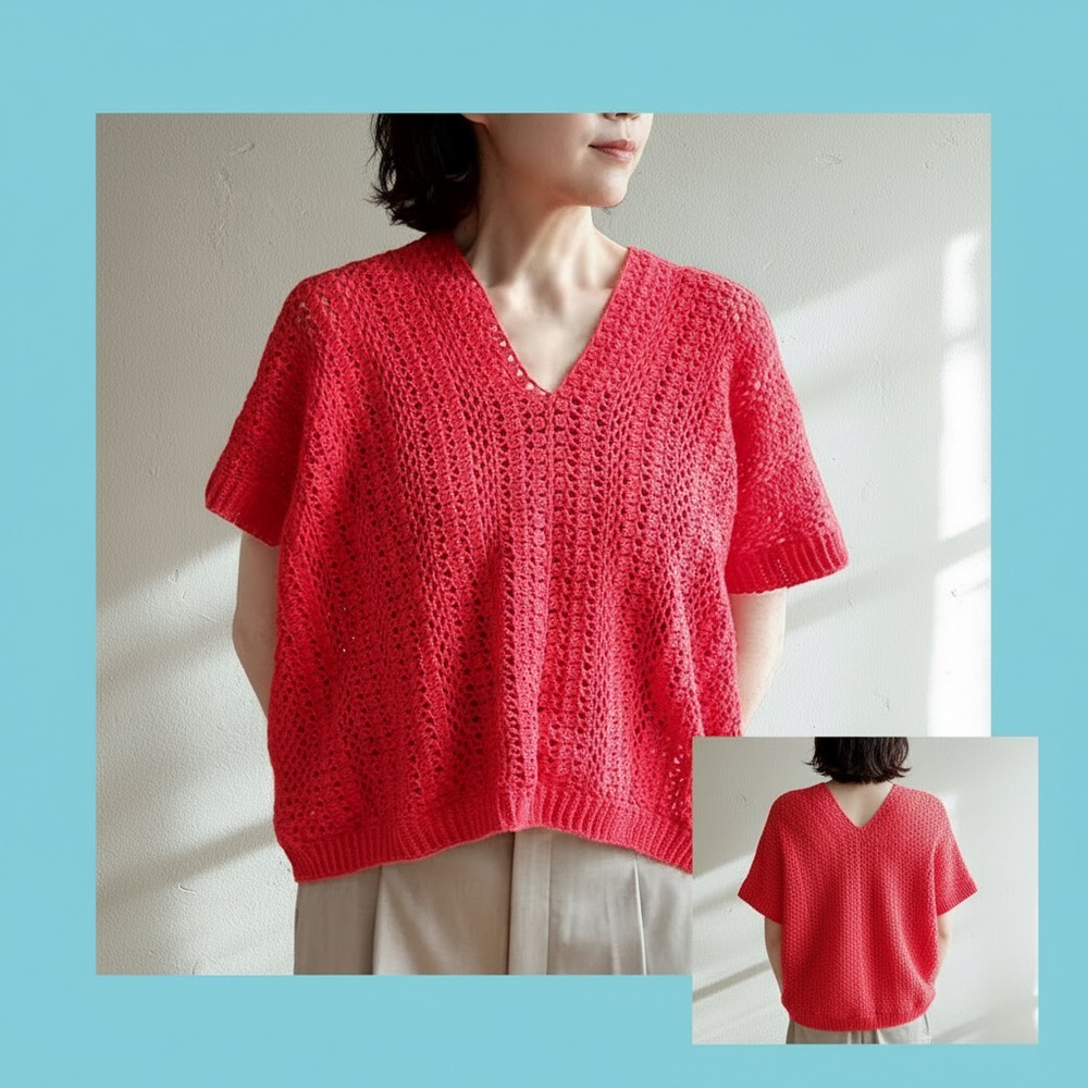 Soft summer sunshine, a gentle breeze, this pullover is the kind of handcrafted top that feels light, breezy, and full of charm. Its airy stitches and delicate texture give it an effortless, casual elegance, making it a perfect choice for warm days when you want comfort without sacrificing style.