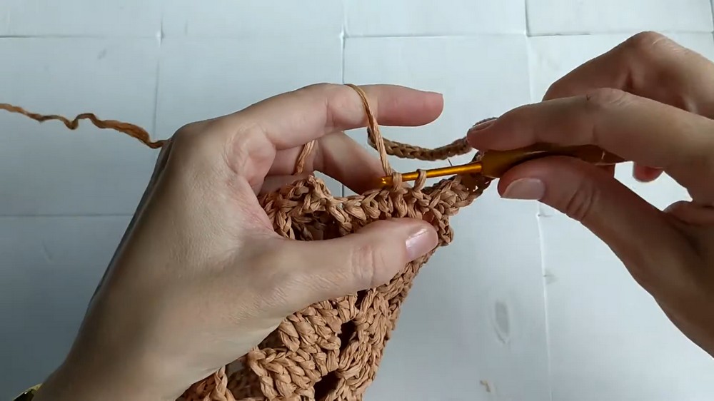 Control Height: Raffia yarn does not stretch, so control the height of your stitches immediately as you work to ensure uniformity.