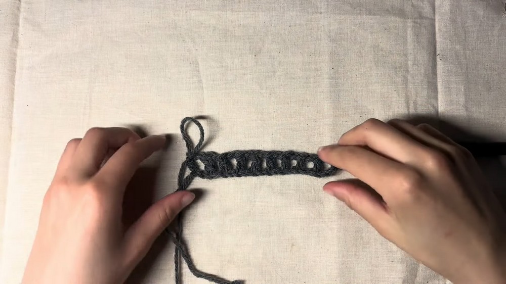 The scarf starts with a simple base chain, which forms the foundation for a repeating pattern of double crochets and chain-one spaces. Each row is straightforward to follow, utilizing beginner-friendly techniques that are easy to master.