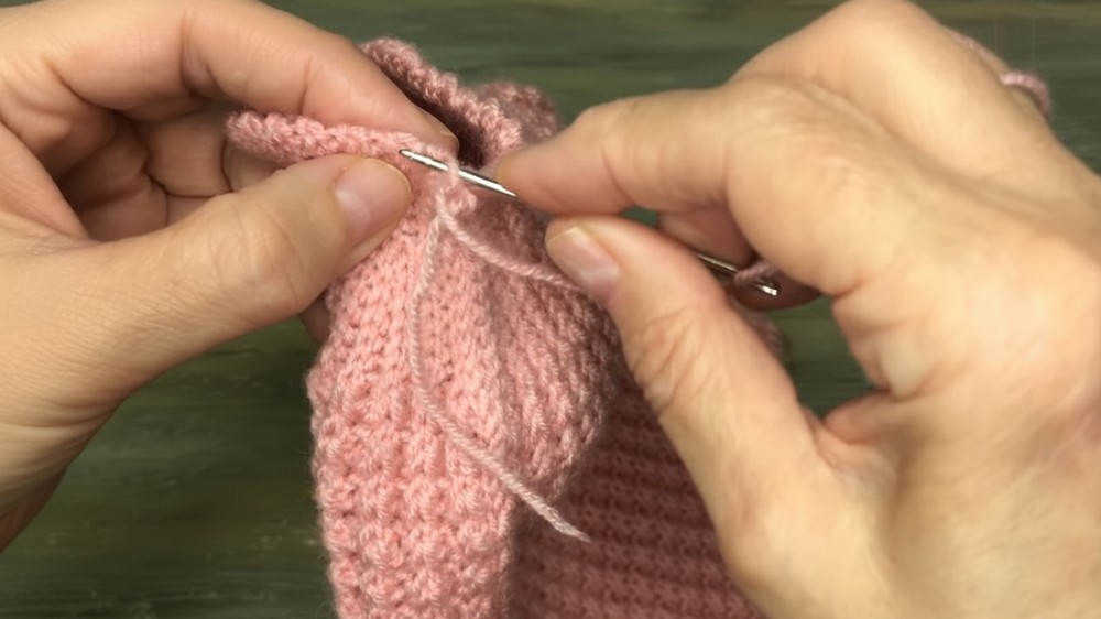 - Gather the top by sewing the loops at the beginning of the rows using a wool needle: