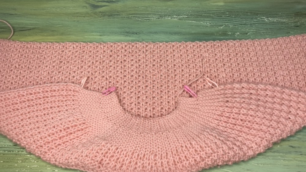 - After completing the rows, mark 14 stitches in the crown for neat alignment.